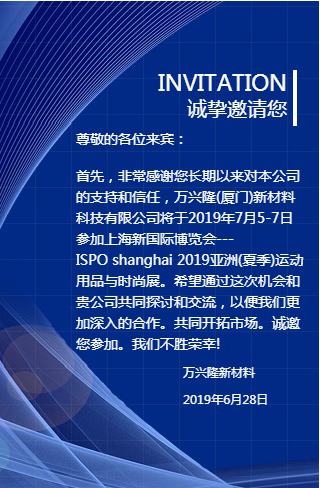 2019.7.5-7日ISPO shanghai 2019 亚洲(夏季)运动用品与时尚展见!