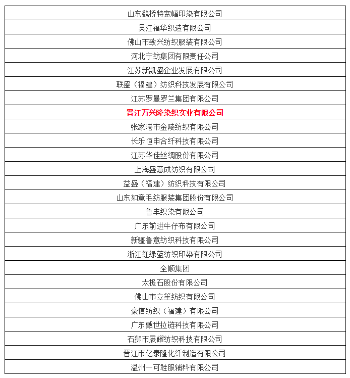 “2019年度纺织质量管理创新奖”获奖企业名单